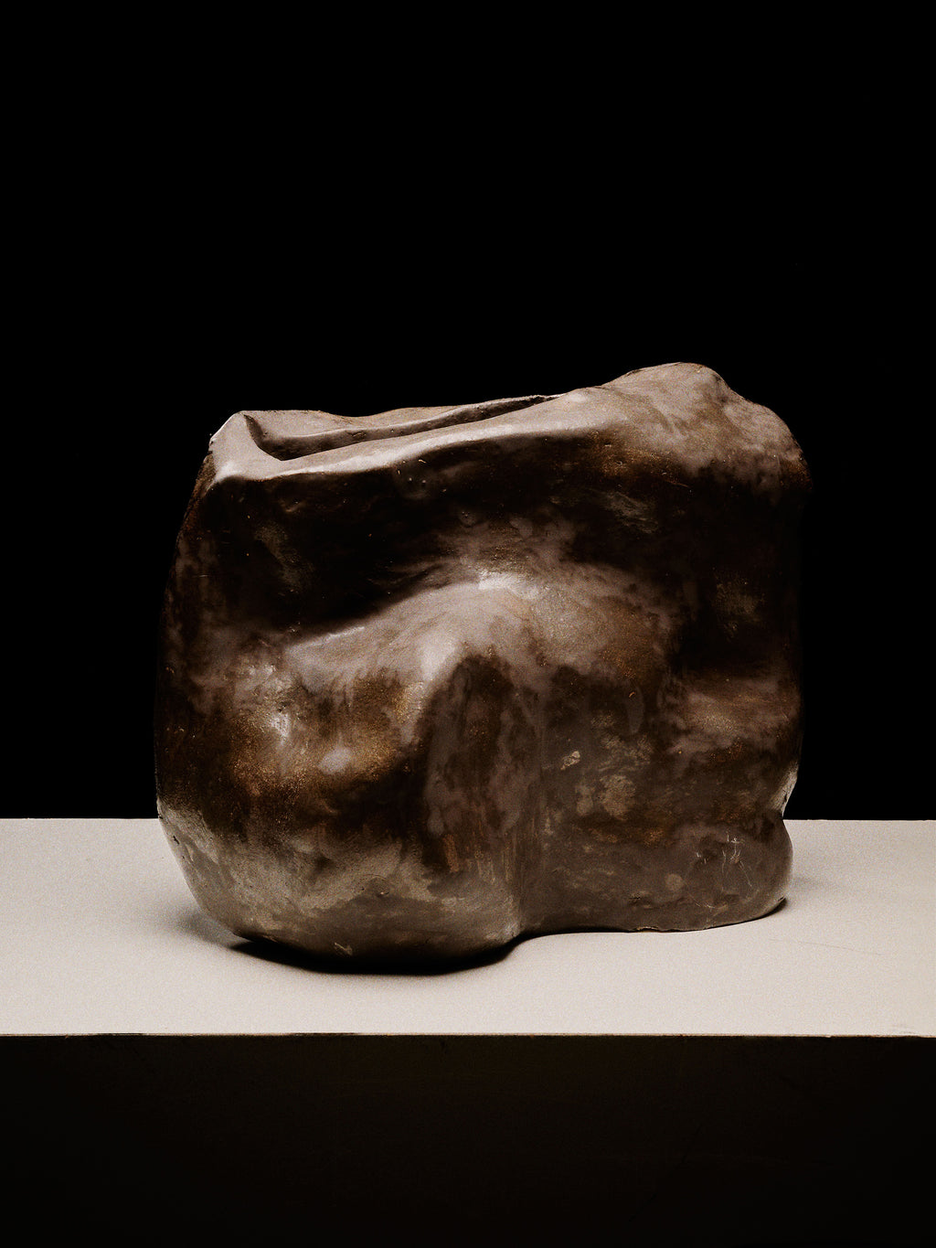 kombinerer skulpturelle former med en dyp, jordnær finish. Et rått, men raffinert uttrykk – designet for å stå alene eller komplettere ethvert kuratert rom.